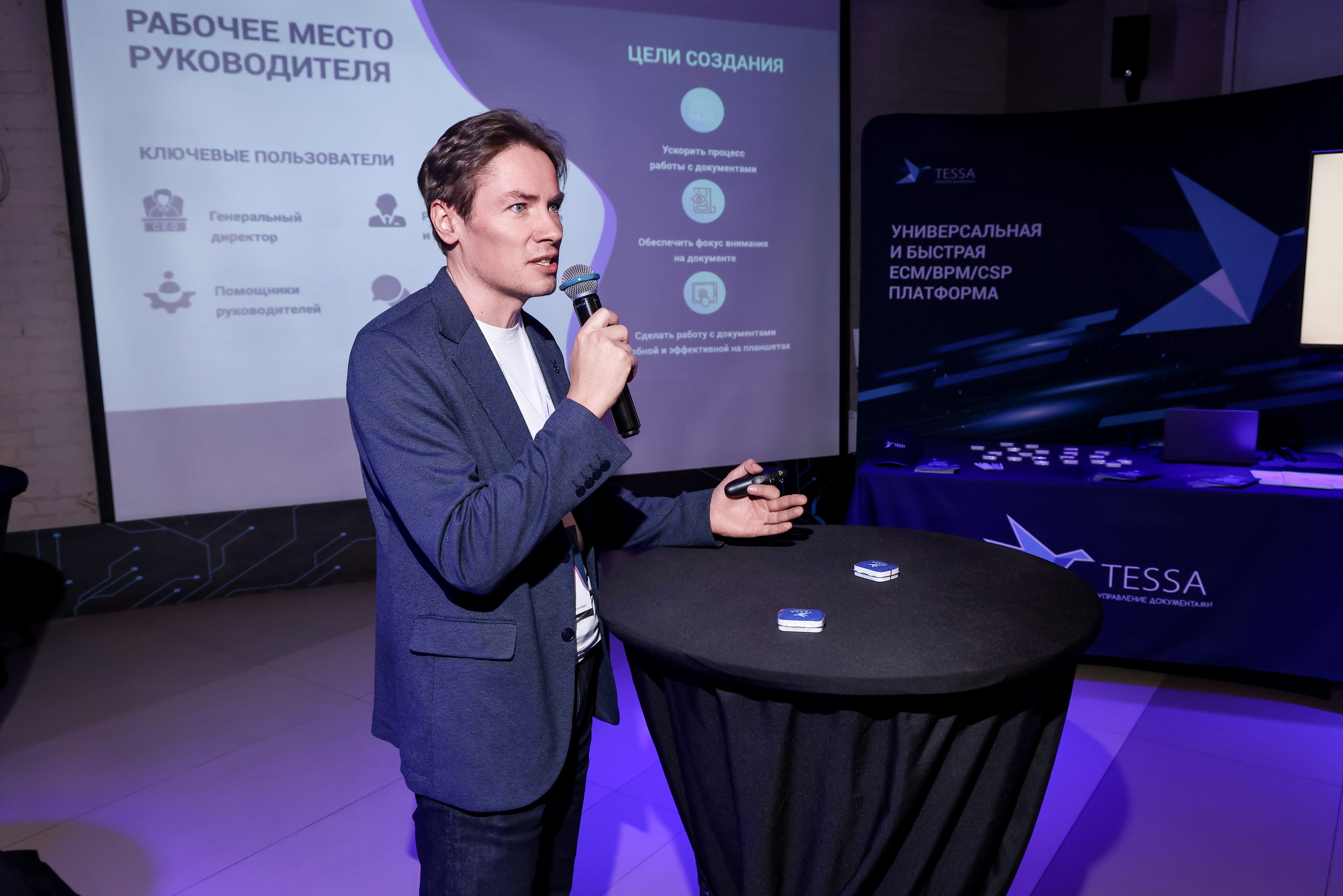 В демо-зоне были представлены три стенда, где участники могли лично ознакомиться с работой новой версии платформы TESSA 4.2 и продуктовыми решениями. В числе новых продуктов экосистемы TESSA, представленных на ознакомление — Рабочее место руководителя, Корпоративный архив документов, Сравнение документов и Конструктор информационных панелей.