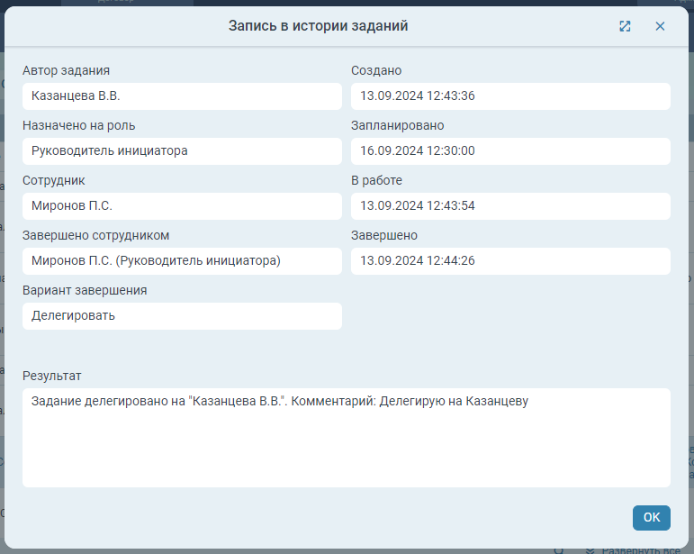 - Роль – роль или сотрудник, кому отправлено задание;