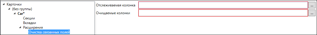 В поле “Очищаемые колонки” указывается набор колонок, которые будут очищены при очистке “Отслеживаемой колонки”. Это могут быть поля любой принадлежащей карточке строковой секции, а также поля табличной секции карточки.