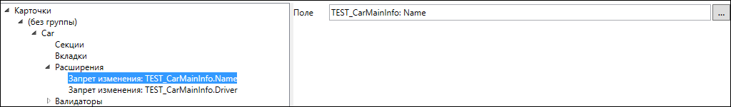 Расширение типа карточки для запрета изменения колонки (комплексной или физической) после первого сохранения карточки. Позволяет указать колонку в строковой секции, которую можно будет редактировать только при создании карточки. Все связанные с такой колонкой контролы после первого сохранения карточки будут доступны только для чтения. Данное расширение удобно использовать вместе с валидатором на обязательность заполнения данной колонки.