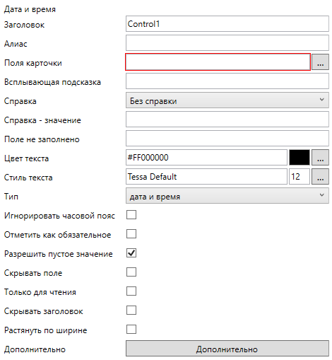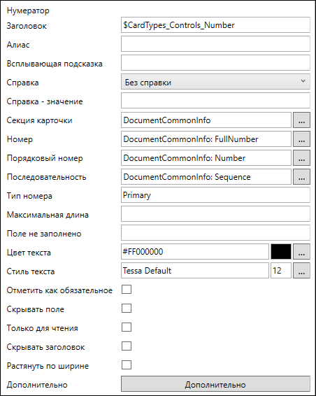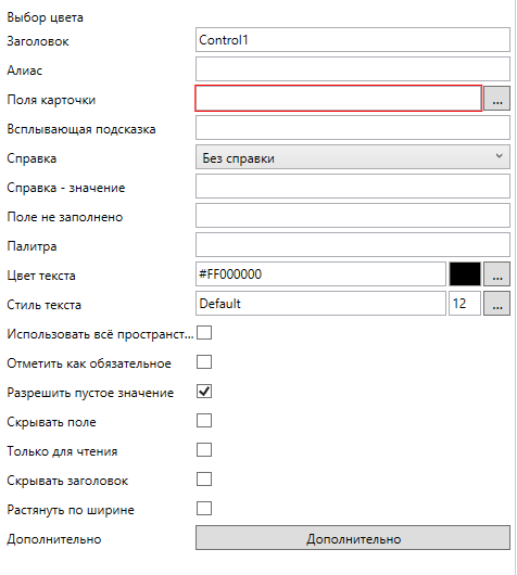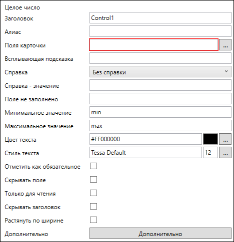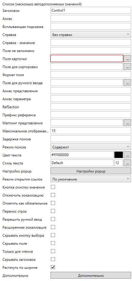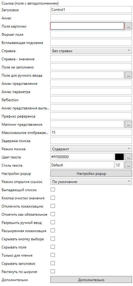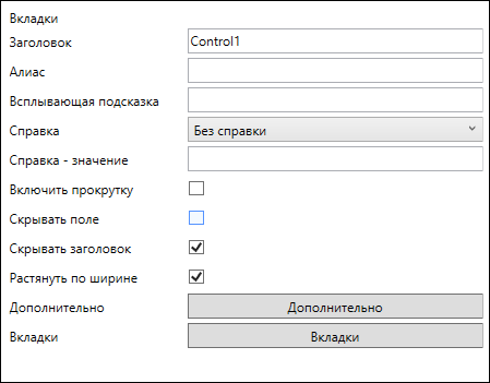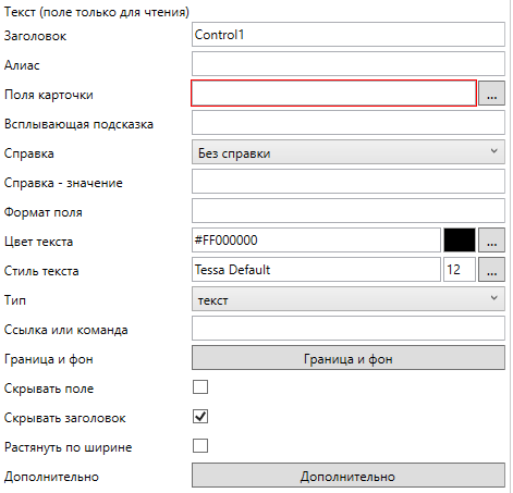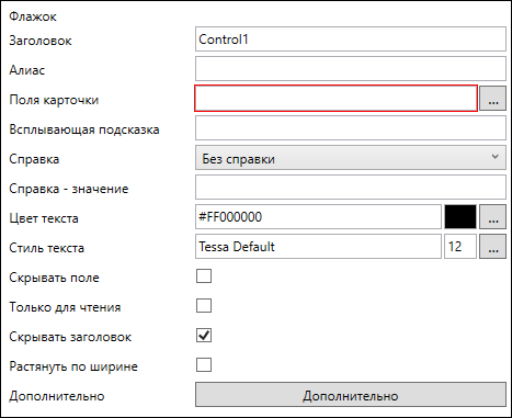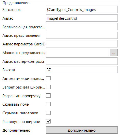 - Алиас контрола представления - единственное обязательное поле расширения. Здесь необходимо указать уникальный псевдоним (алиас) соответствующего элемента управления формы карточки или задания.