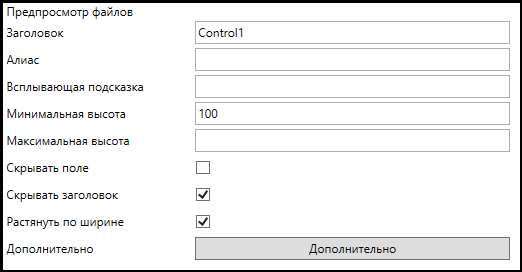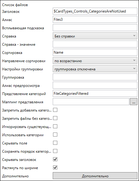 Остальные настройки этого расширения аналогичны настройкам элемента управления “Список файлов”, где приведено их описание.