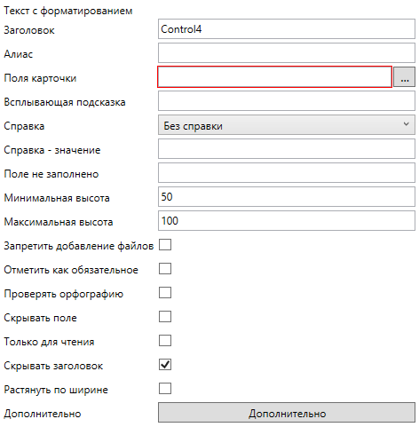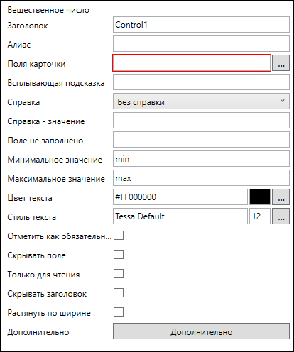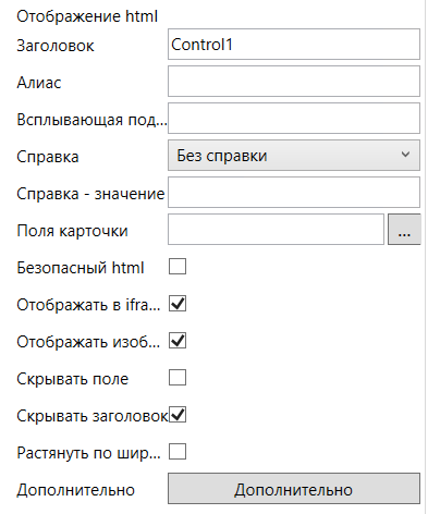 html. Получить нужный идентификатор можно, открыв структуру карточки шаблона файла и скопировав содержимое поляID. - Алиас контрола для отображения - алиас контрола отображения