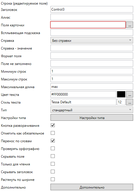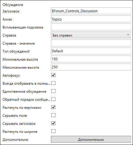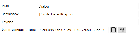 - Имя диалога - служебное имя диалога для обеспечения возможности работы с ним из расширений. Используется только при открытии карточки в диалоговом режиме. Поле является опциональным.
