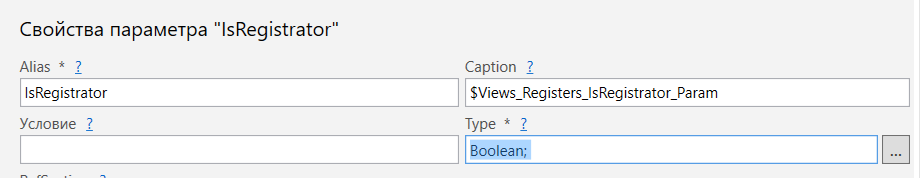 Тип параметра фильтрации в конструкторе представлений: