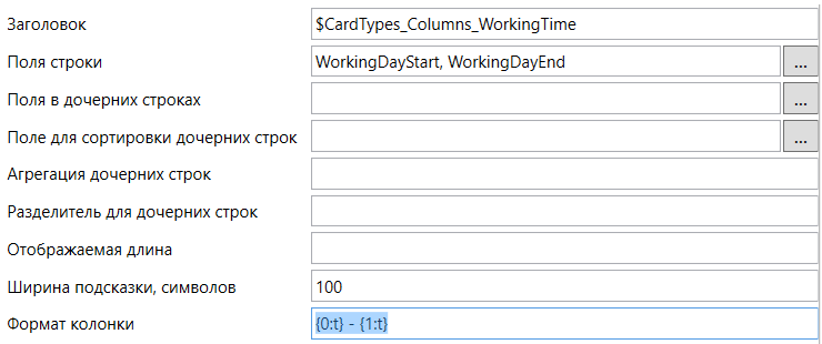 Контролы “Строка” (с флагом Только для чтения ), “Текст”, “Ссылка”, “Список” имеют настройку Формат поля, которая описывает, каким образом выводится строковое представление для колонок, указанных в настройке Поля карточки.