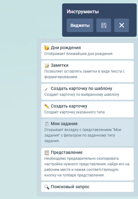 • Виджет-кнопка, по нажатию на которую открывается новая вкладка с представлением Мои задания.