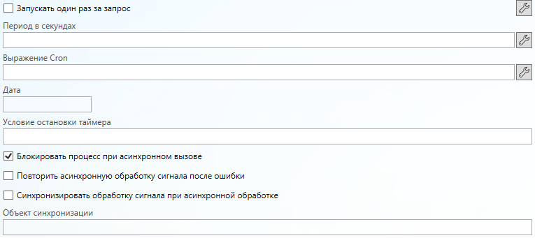 Запускать один раз за запрос (значение типа boolean, может быть привязано к параметрам процесса) - флаг определяет, нужно ли запускать таймер только один раз.
