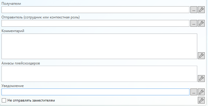 Не отправлять заместителям (значение типа boolean, может быть привязано к параметрам процесса) - определяет, нужно ли при формировании списка получателей уведомления учитывать замещения сотрудников.