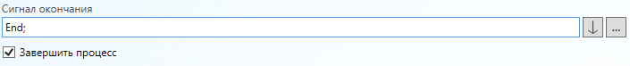 Данное действие обозначает точку окончания процесса. Данное действие является одиночным. В одном процессе может быть несколько действий данного типа. При получении сигнала, данное действие, в зависимости от настроенных параметров, завершает текущий процесс и отправляет сигнал на все процессы, подписанные на данный процесс. По умолчанию это родительский процесс, создавший завершающийся процесс.