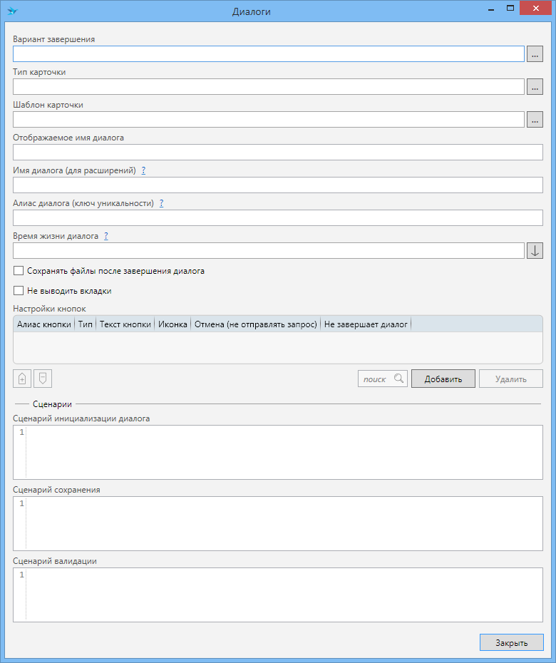 Варианты завершения (таблица) - содержит настройки обработки заданий при их завершении по вариантам завершения.