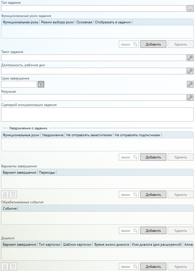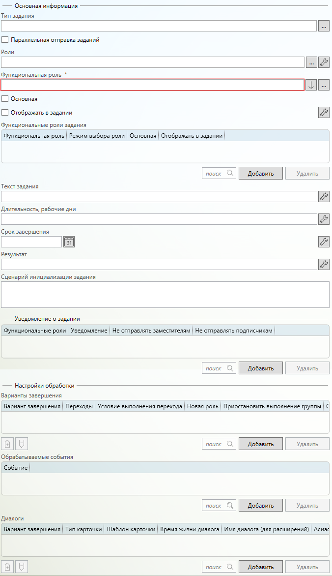 Список ролей- выбирается список ролей из справочника. Для каждой роли создаётся отдельная запись с указанной функциональной ролью в списке связанных с заданием ролей. -
