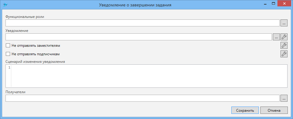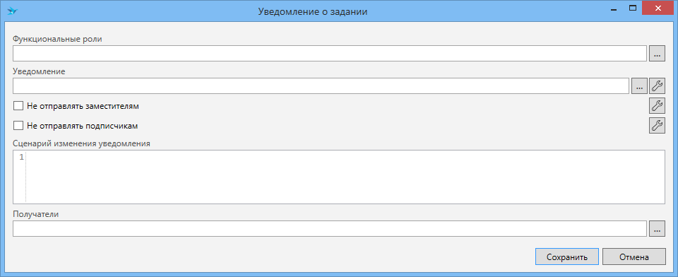 Сценарий изменения уведомления (значение типа string) - скрипт модификации уведомления. В нем можно изменить шаблон отправляемого уведомления, приложить файлы к уведомлению, а также передать делегаты для модификации письма для конкретного получателя.