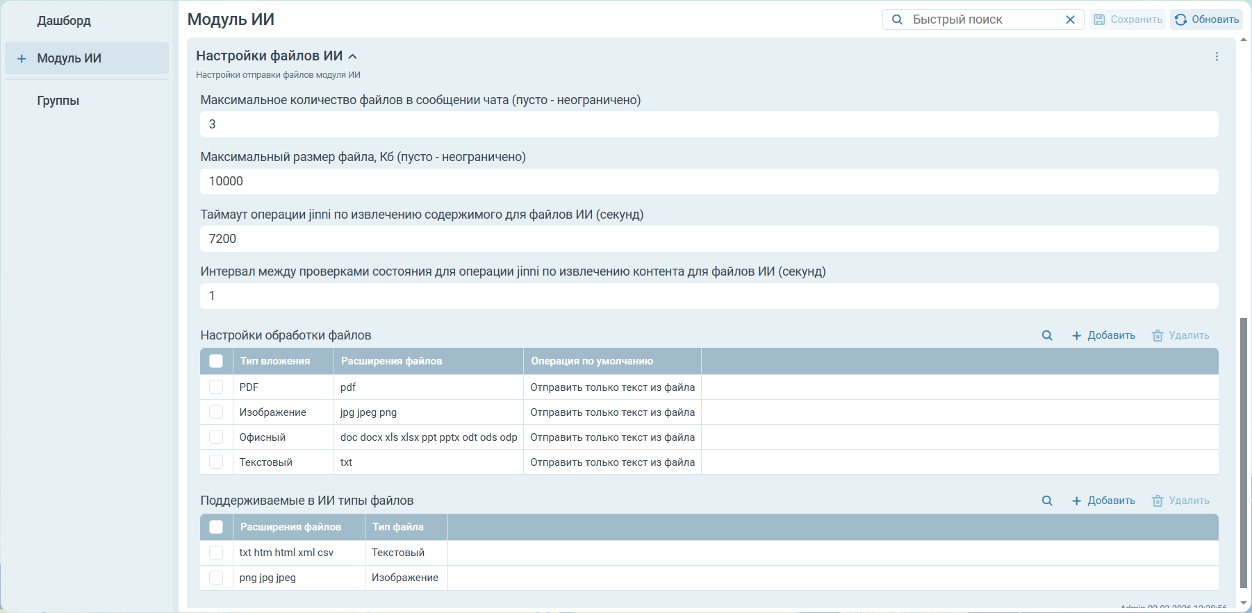 jinniи доступна только для моделей ИИ, которые поддерживают обработку изображений; - отправить файл без предобработки. Позволяет отправить файл без предварительной обработки. Форматы файлов зависят от конкретной модели. Изменять не рекомендуется.
