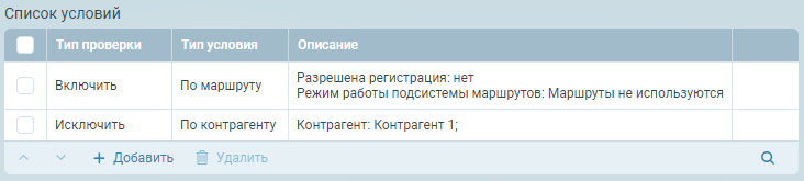 После завершения редактирования условия, на основе типа условия и его настроек формируется описание условия, которое отображается в таблице с условиями.