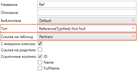 FOREIGN KEYв SQL), который содержит ключевые колонки, включённые в комплексную колонку (в списке Ссылочные колонки они отмечены как флаги, доступные только для чтения).- Этот признак влияет только на наличие внешнего ключа в БД, его наличие или отсутствие не влияет на поведение связанных контролов, и не изменяет иным образом поведение системы при работе с колонкой.