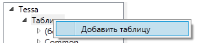 Для создания таблицы необходимо нажать правой кнопкой мыши по узлу Таблицы и выбрать в контекстном меню пункт Добавить таблицу.