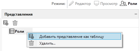 Для добавления дочернего представления необходимо нажать на кнопку