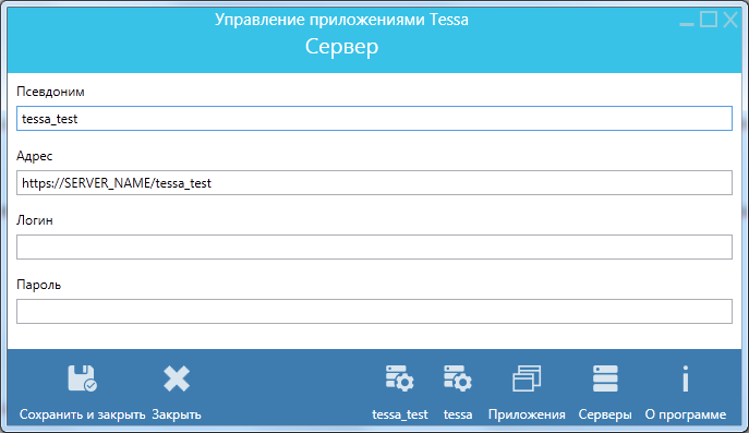 Tessa Applicationsперейти на вкладку Сервер и нажать на кнопку Добавить: