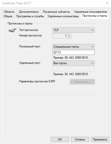 Для указанного порта (в примере это 32113) также потребуется добавить правило в брандмауэр, разрешающее входящий трафик TCP для этого порта.