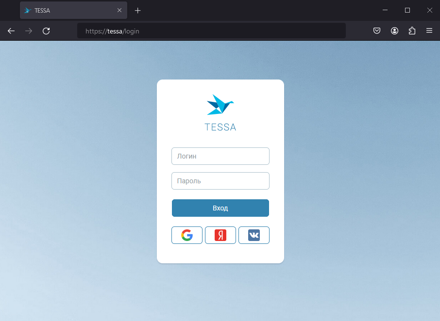 После успешной внешней аутентификации произойдёт вход в систему TESSA и перенаправление на необходимую страницу.