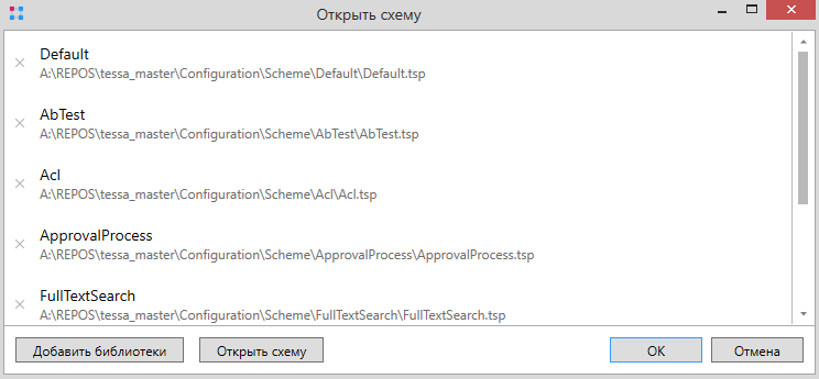 Configuration\Scheme\Platform.tsd. Откроется окно добавления схемы с указанием включенных библиотек: