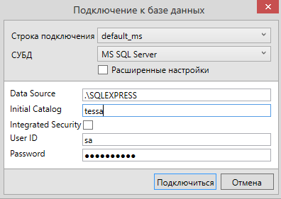 sa - Пароль: