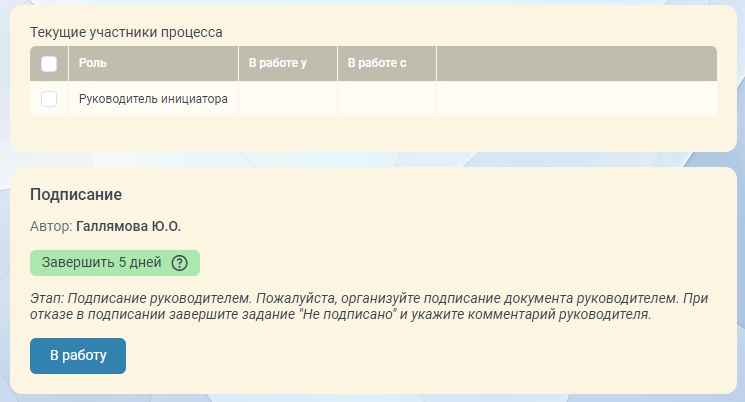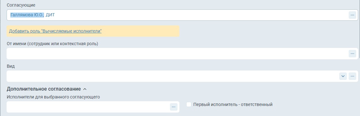 - Роль соответствует одному из значений: владельцу текущего процесса, если он задан, иначе инициатору текущего процесса, если он задан, иначе текущему сотруднику.