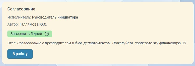 Если задание с информацией о процессе согласования не отображается, то редактор экземпляра процесса согласования можно открыть по тайлу Открыть схему согласования в меню системы.