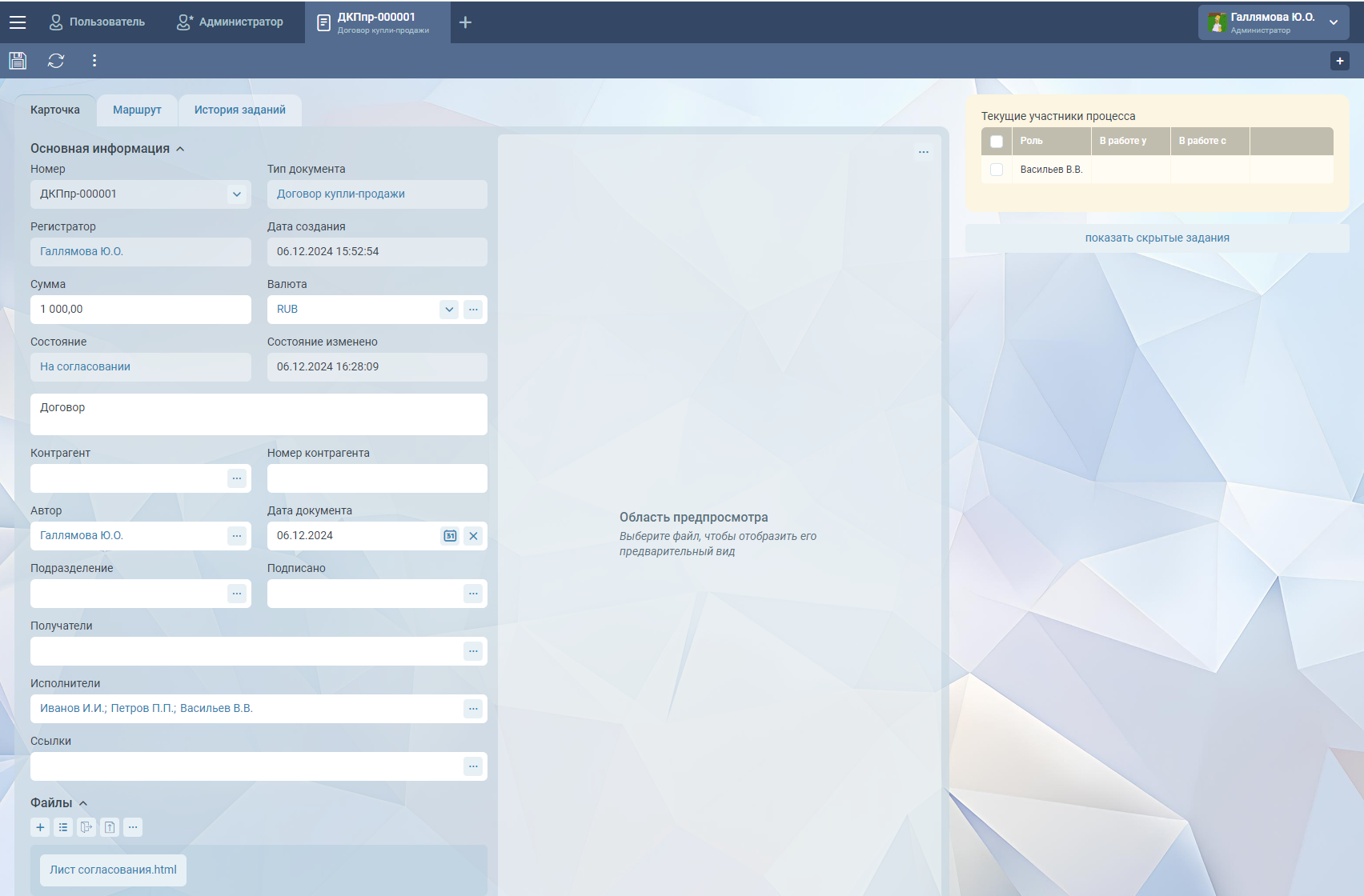 Процессы обработки документов в платформе также можно настраивать с помощью другого модуля - графического конструктора бизнес-процессов.