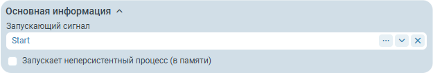 Запускающий сигнал - тип сигнала, при получении которого процесс начинает свое выполнение. Можно ввести любое значение или выбрать его в справочнике. Обязательно для заполнения.