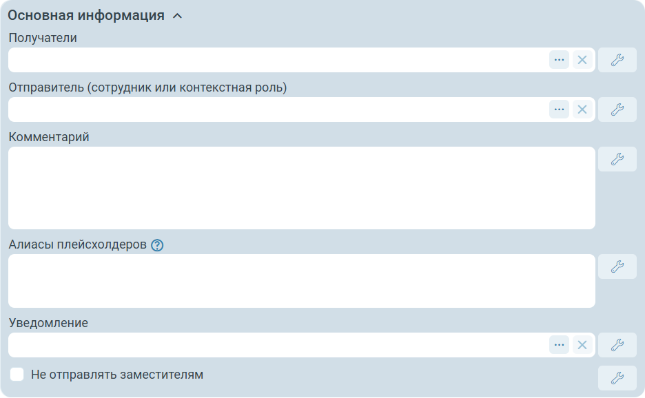 Не отправлять заместителям - нужно ли при формировании списка получателей уведомления учитывать замещения сотрудников. Может быть привязано к параметрам процесса.