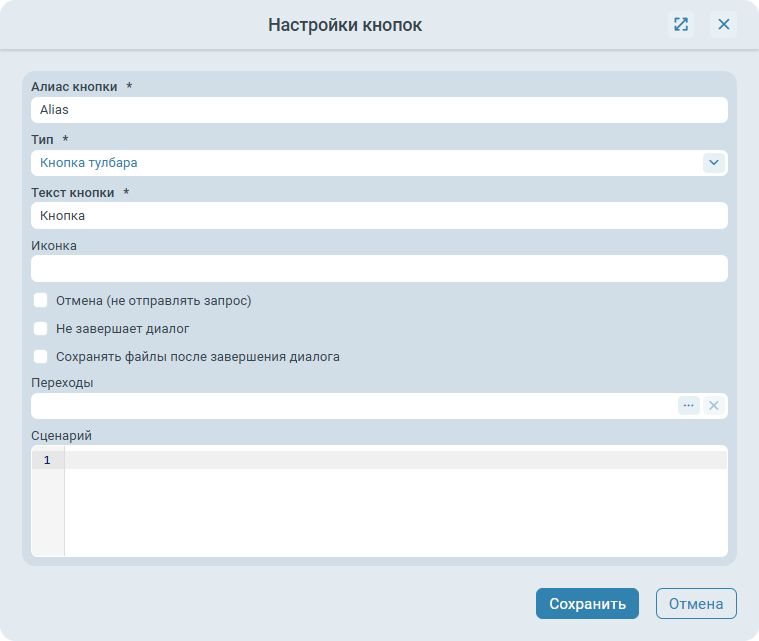 Вариант завершения (значение из справочника вариантов завершения) - вариант завершения, при котором отображается данный диалог. Для каждого варианта завершения может быть настроен только один диалог. Если для одного и того же варианта завершения настроено несколько диалогов, будет использоваться последний в таблице. Обязательно для заполнения.