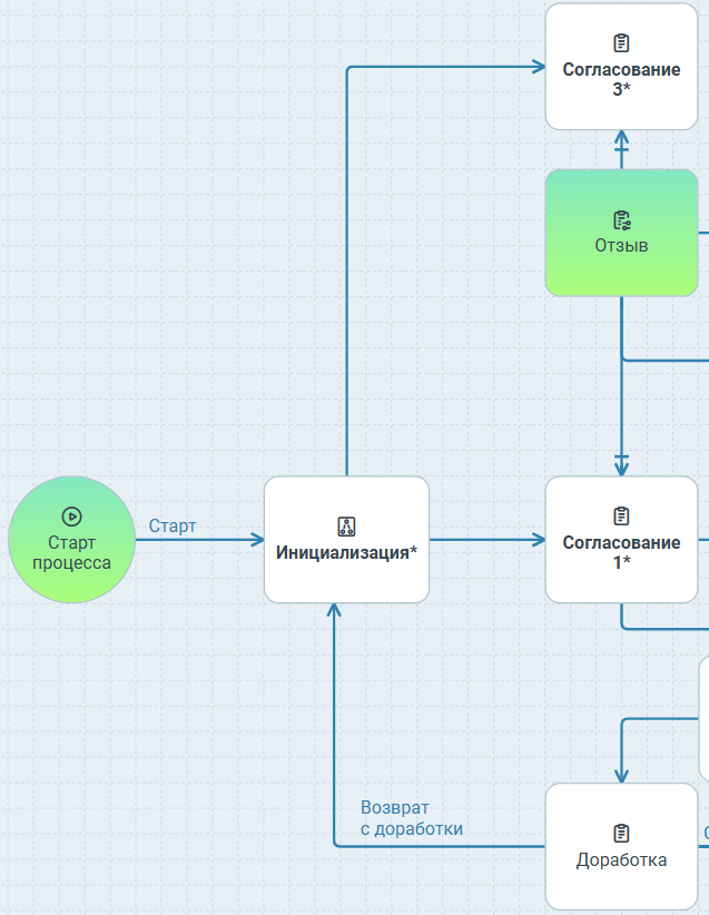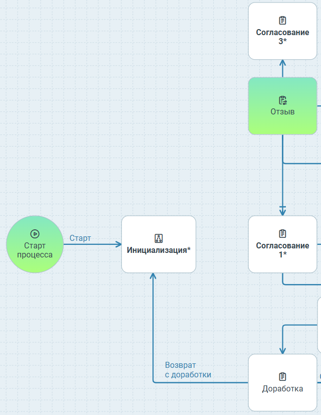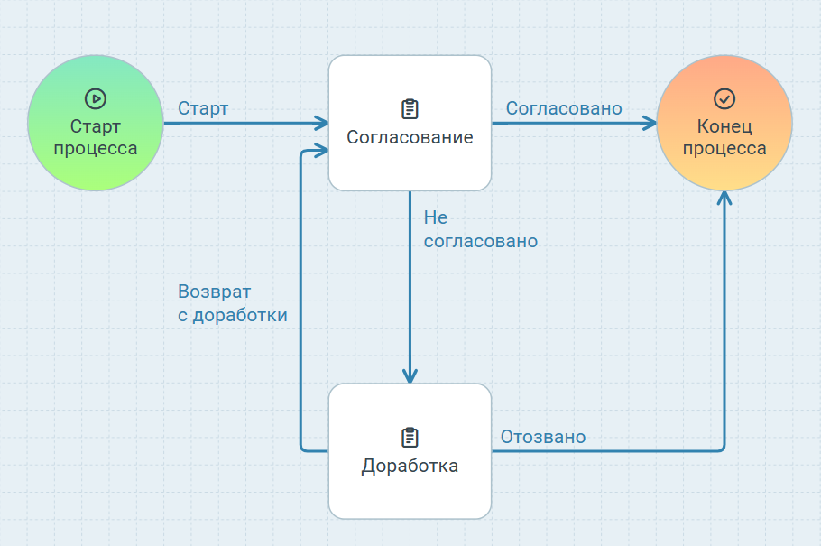 - Узлом запуска процесса и узлом согласования.