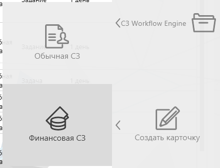 А теперь давайте инициируем финансовую заявку, чтобы посмотреть на работу согласования. Нажмите в правой панели тайл “Финансовая СЗ”.