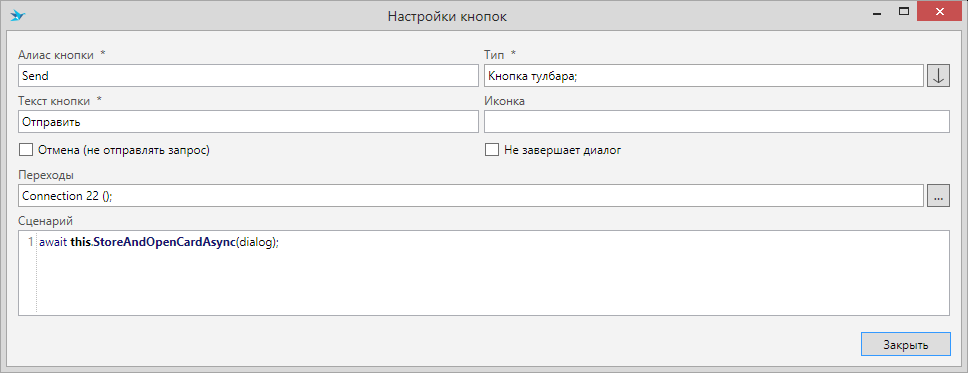 Кнопка “Отправить”, у обоих диалогов, настроена идентично: