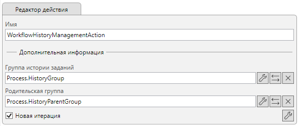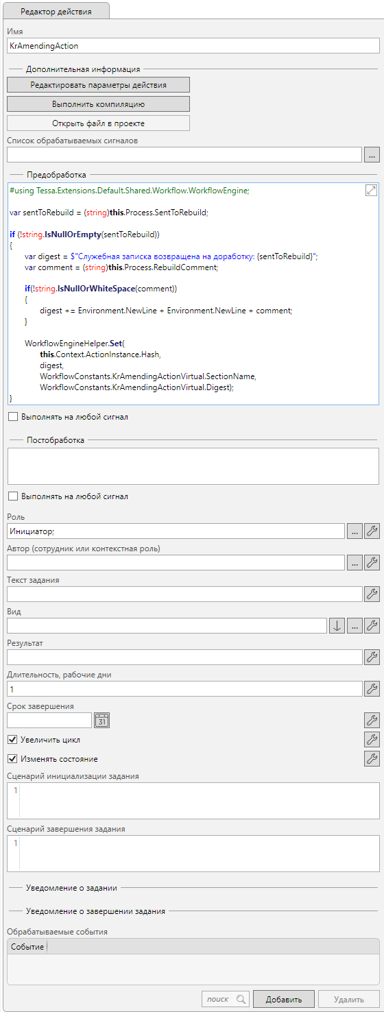 Параметры действия из узла “Инициализация обычной СЗ”: