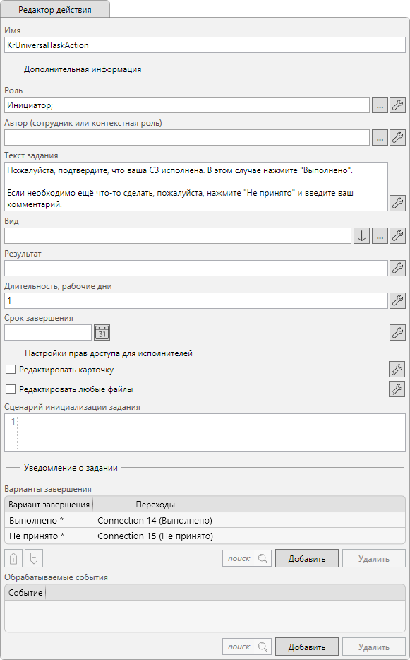 | Подтвердить выполнение | Настраиваемое задание |