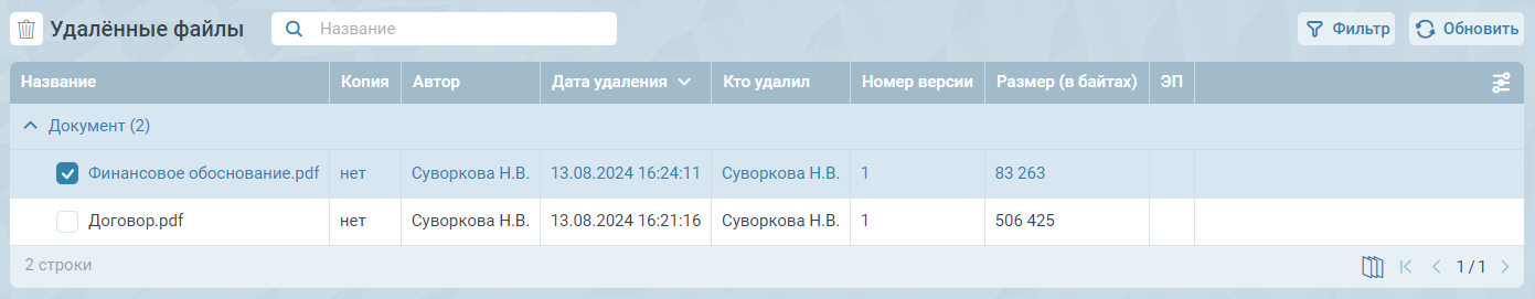 Фильтрация – позволяет отфильтровать элементы списка файлов по определенному признаку (категория, тип, цикл согласования).