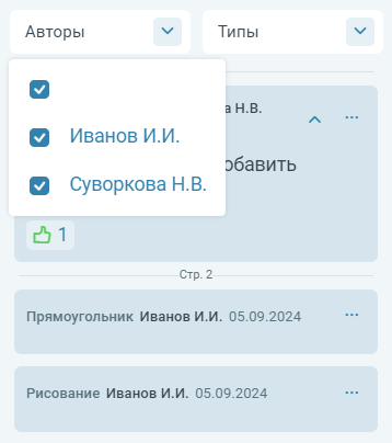 Так на панели комментариев можно включить фильтрацию по автору или типу аннотации. Для этого нужно нажать на соответствующую кнопку фильтра и поставить нужный флаг.