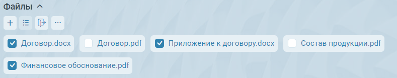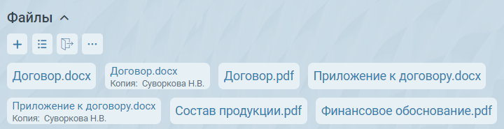 Данный блок не только отображает список приложенных к карточке файлов, но и содержит в себе все необходимые функции для работы с ними.