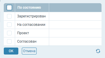Если через окно параметров фильтрации был настроен поиск по нескольким значениям одного параметра, то при фильтрации по этой колонке всегда отображается пустое поле без значения. При добавлении нового условия, раннее заданные фильтры для этой колонки будут удалены.