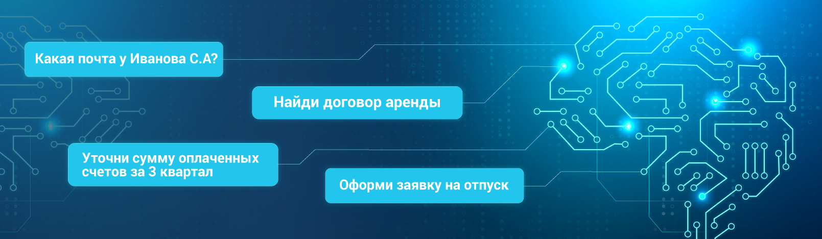Например, сотрудник может использовать следующие запросы: «Напиши текст приглашения на конференцию», «Оформи заявку на отпуск и настрой мое замещение на это время», «Уточни сумму договора с подрядчиком», «Измени маршрут согласования документа».