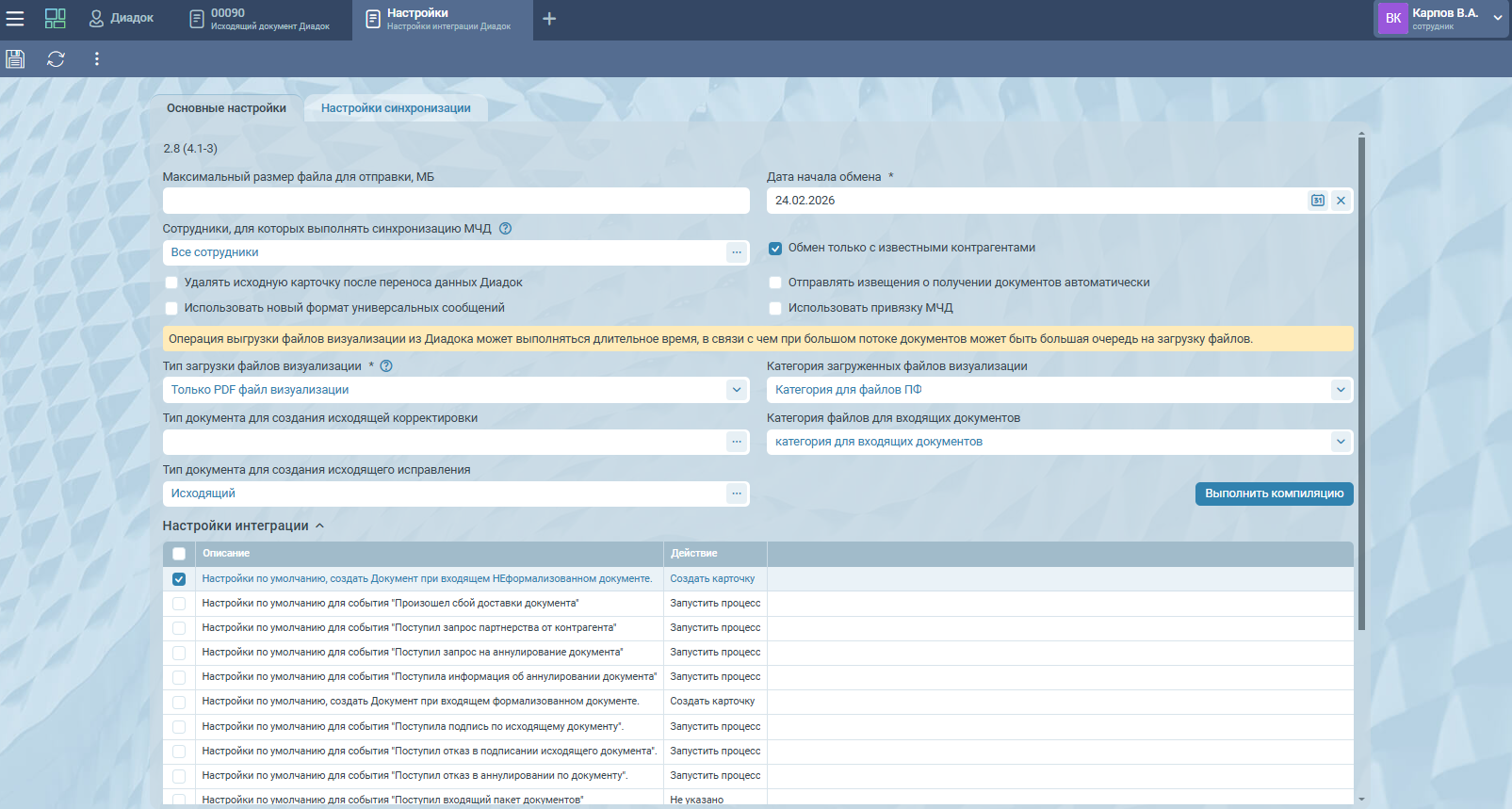 Взаимодействие с Диадоком реализовано с помощью отдельного этапа, который вы легко можете встроить в любой существующий процесс. Вы сами решаете, какую функциональность использовать и донастраивать под ваши задачи: подсистему маршрутов или конструктор бизнес-процессов.