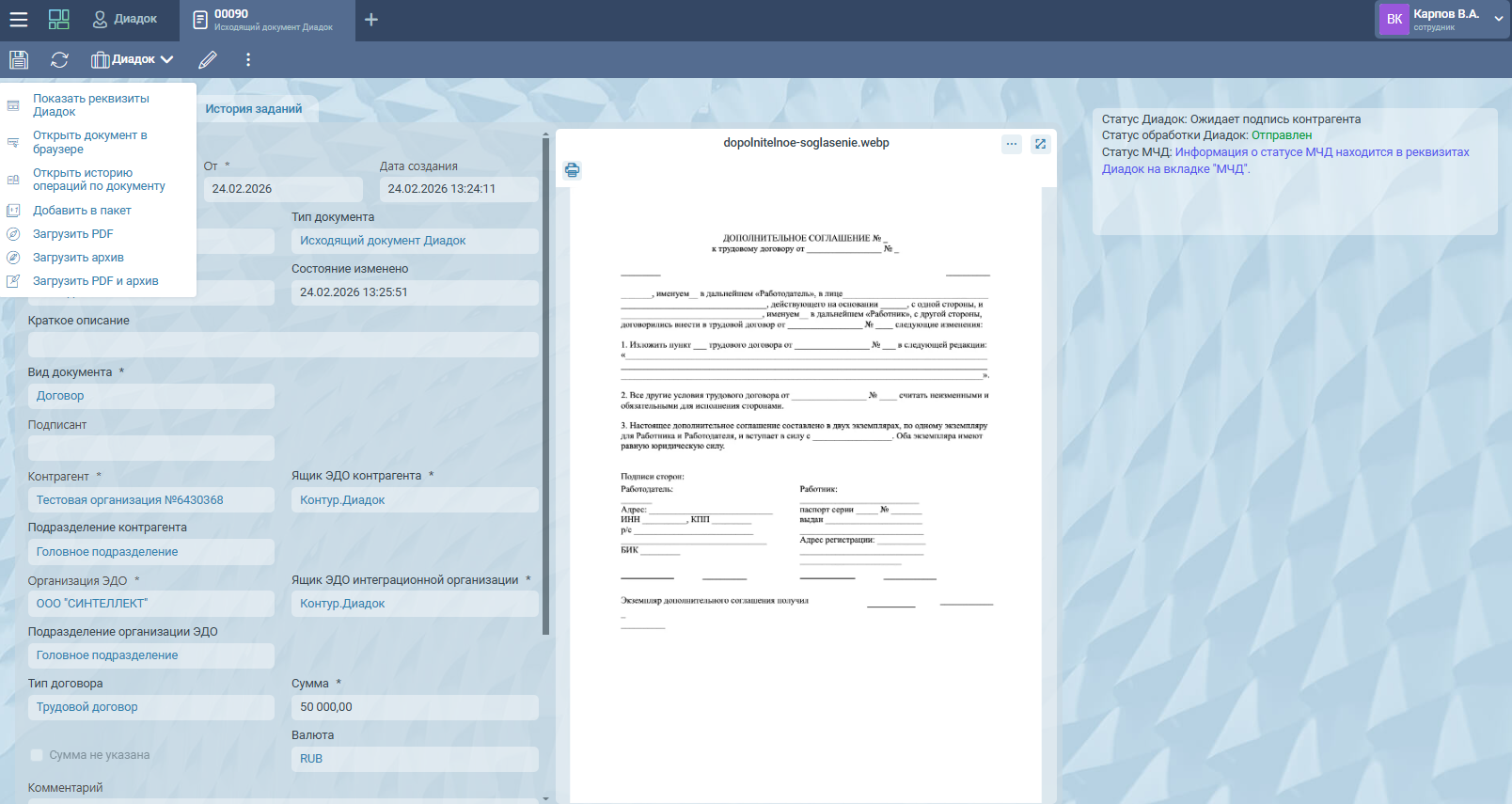 С помощью шлюза с Диадок в системе TESSA можно автоматизировать и оптимизировать множество рутинных процессов, связанных с подписанием и обменом документами с контрагентами.