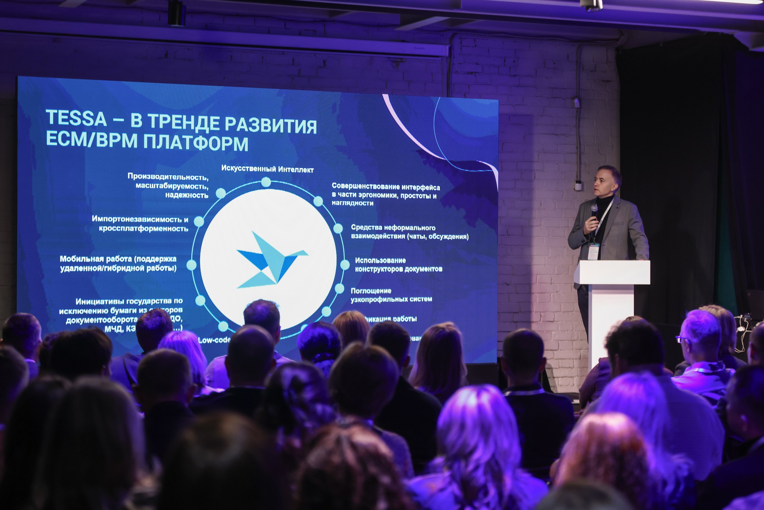 Павел обозначил конкурентные преимущества, позволяющие TESSA развиваться в общем тренде ECM/BPM-систем, оставаясь уникальным продуктом. С первых релизов в TESSA были заложены основополагающие принципы: скорость, надежность, масштабируемость и импортонезависимость. Именно этот проверенный временем фундамент позволил органично интегрировать самые востребованные технологии сегодняшнего дня — искусственный интеллект, low-code, инструменты неформального взаимодействия и многое другое — делая TESSA универсальной платформой, которая одинаково эффективно служит в качестве основы для цифровой трансформации как крупного холдинга, так и гибким инструментом для автоматизации отдельных процессов в растущем бизнесе.