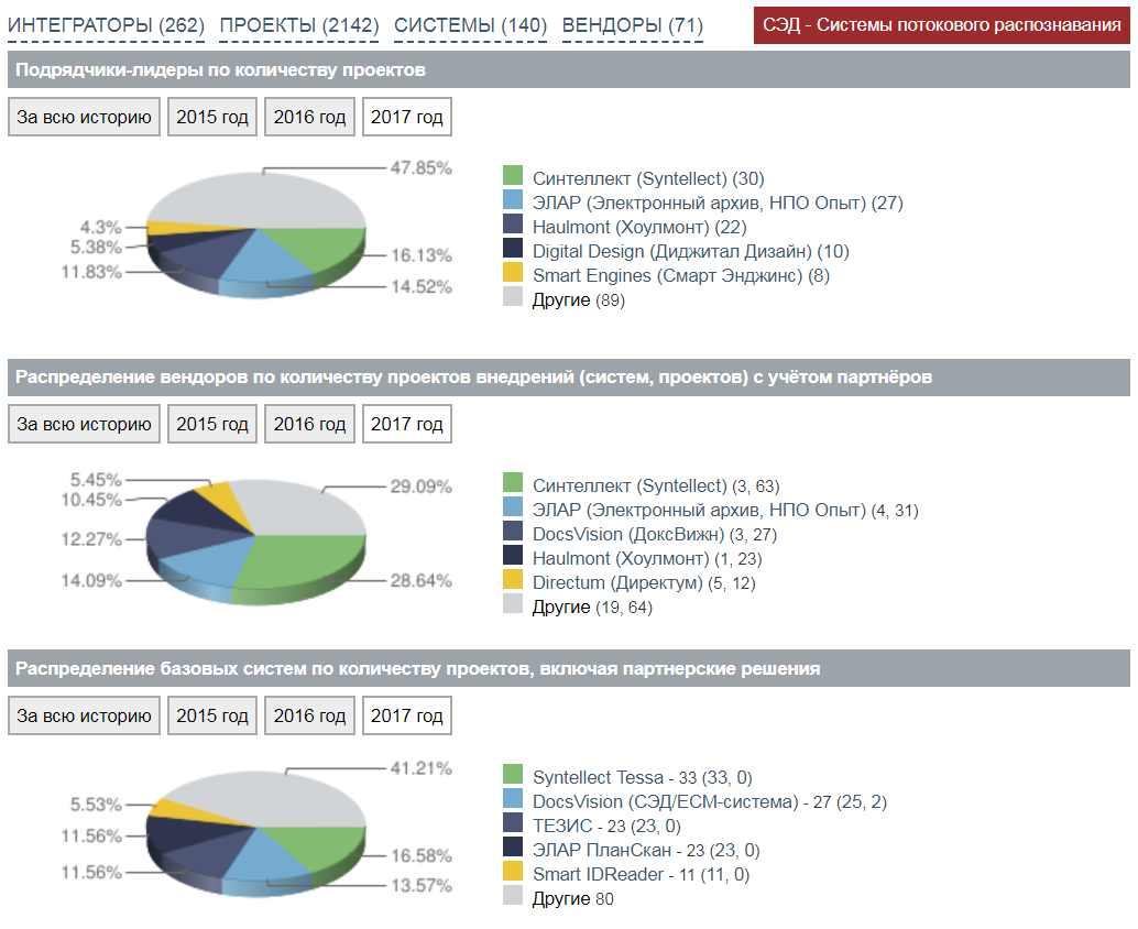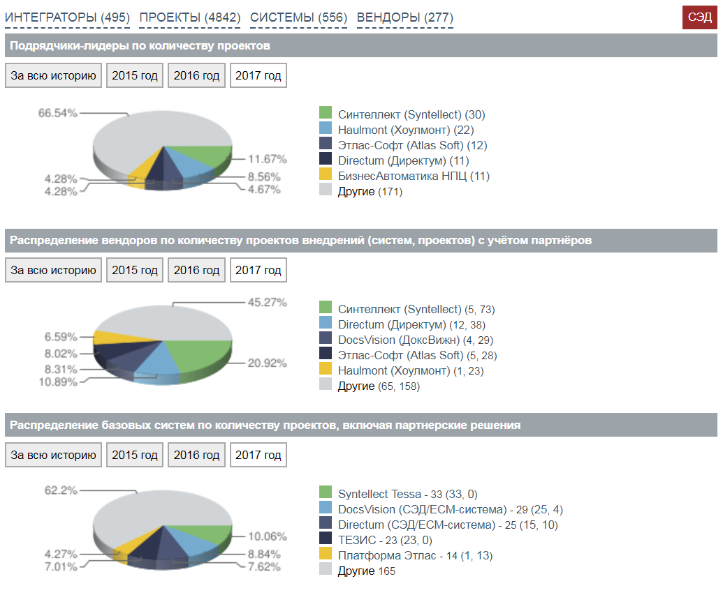 Российский интернет-портал и аналитическое агентство Tadviser традиционно проводит обзоры рынка СЭД и готовит статистические отчеты по проектам внедрения.