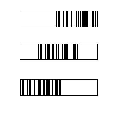 Пример работы параметра a для вывода штрих-кода, выровненного к правому краю, центру и левому краю: