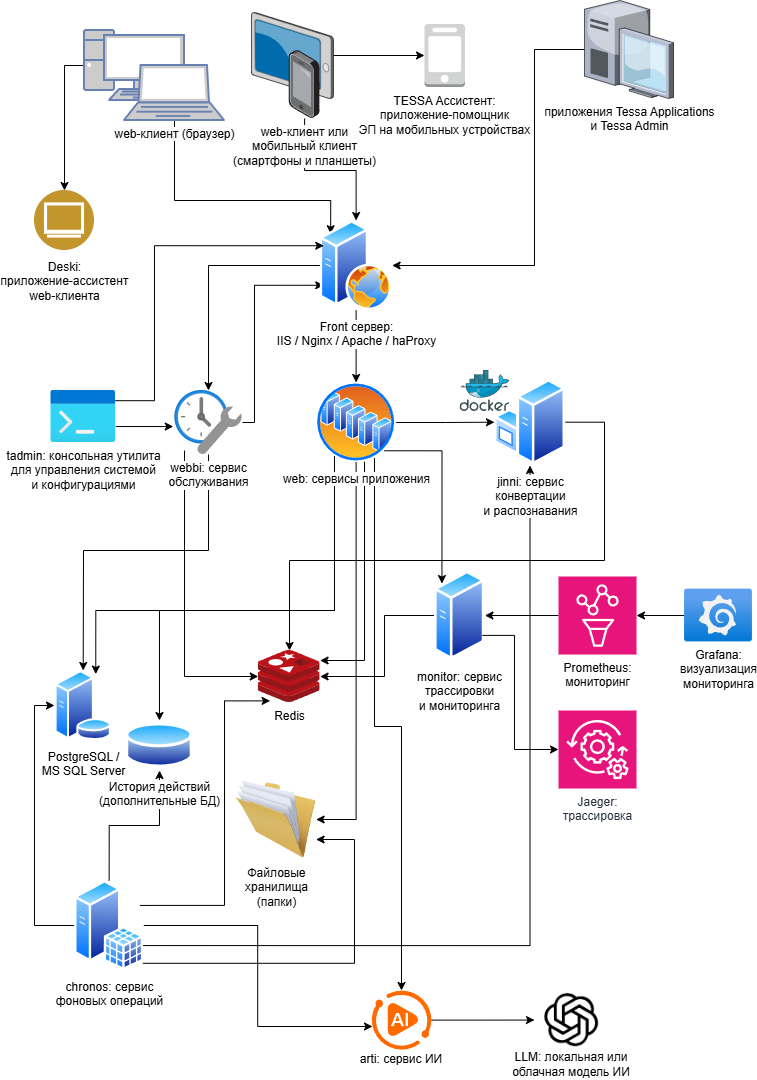 Серверная часть платформы, устанавливается как веб-сервис | Установка TESSA для серверов Windows Настройка веб-сервера Nginx Настройка веб-сервера Apache |