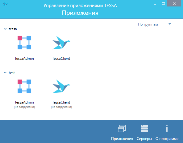 После обновления в Tessa Applications приложения будут сгруппированы. Можно выбрать группировку по серверам или по группам: